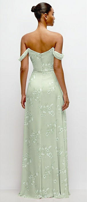 Bow-Shoulder V-Back Chiffon Gown with Front Slit in vintage primrose sage