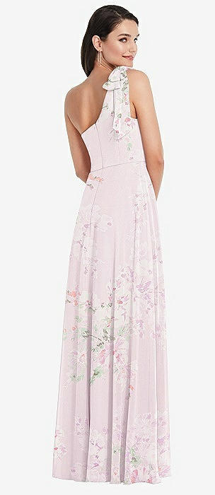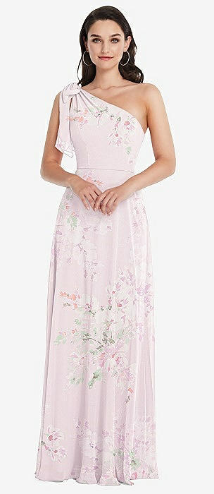 Draped One-Shoulder Maxi Dress with Scarf Bow in watercolor print