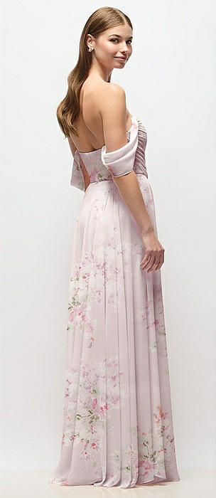 Chiffon Corset Maxi Dress with Removable Off-the-Shoulder Swags in watercolor print