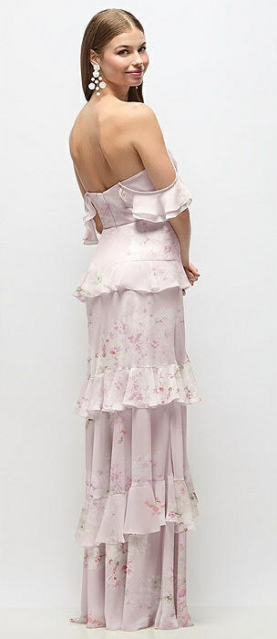 Bustier-Style Chiffon Tiered Ruffle Maxi Dress with Adjustable Straps in watercolor print