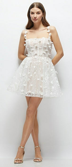 3D Floral Embroidered Little White Mini Dress with Nude Corset Underlay in ivory