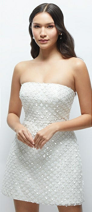 Pearl & Sequin Floret Strapless Mini Dress in pearl