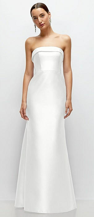 Strapless Cuff Neckline Satin Trumpet Gown in white