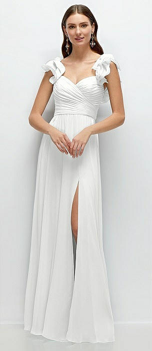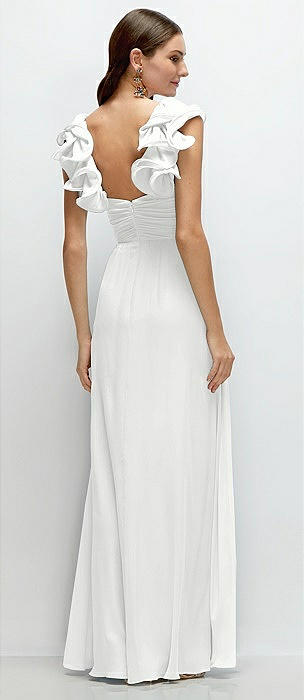 Dramatic Ruffle Edge Strap Chiffon Maxi Dress in white