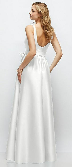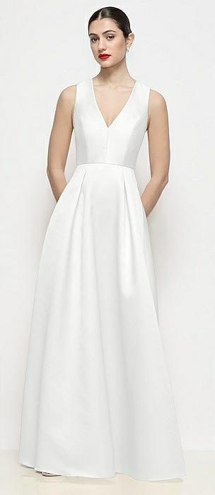 Sleeveless Square-Neck Princess Line Gown with Pockets in white