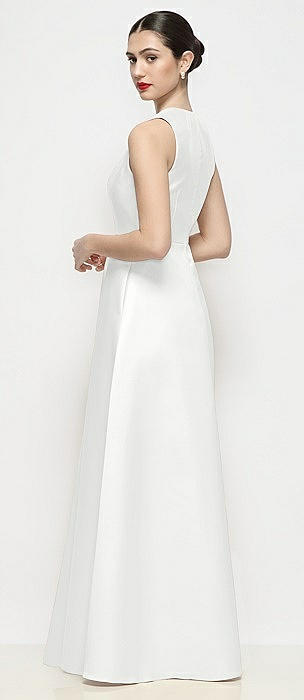 Sleeveless Keyhole Back Satin Maxi Dress in white
