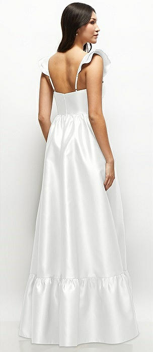 Satin Corset Maxi Dress with Ruffle Straps & Skirt in white