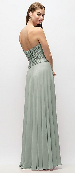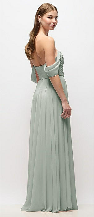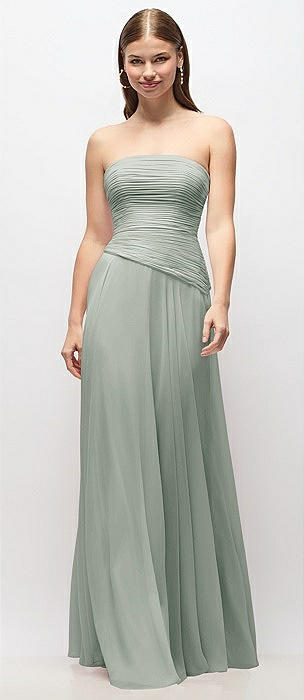 Strapless Chiffon Maxi Dress with Asymmetrical Ruched Drop Waist in willow green