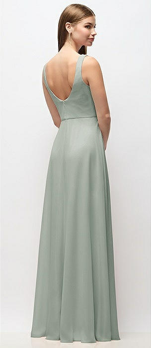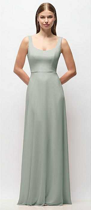 Scoop Neck Tank Strap Chiffon Maxi Dress in willow green