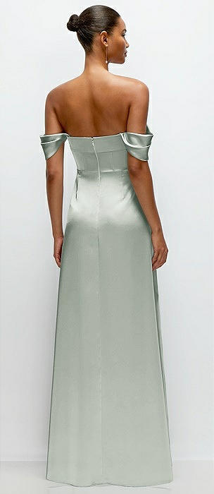 Off-the-Shoulder Bow Satin Corset Dress with Fit and Flare Skirt in willow green