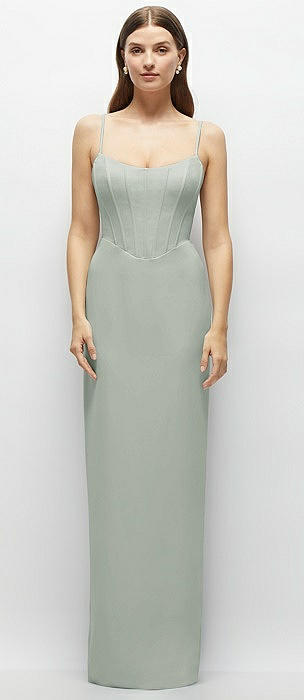 Corset-Style Crepe Column Maxi Dress with Adjustable Straps in willow green