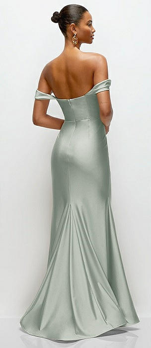 Off-the-Shoulder Corset Stretch Satin Mermaid Dress with Slight Train in willow green