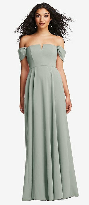 Off-the-Shoulder Pleated Cap Sleeve A-line Maxi Dress in willow green