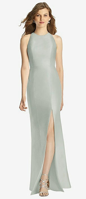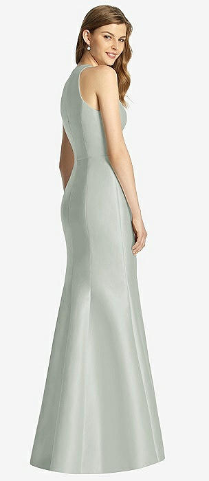 Cowl-Neck Open Tie-Back Stretch Satin Mermaid Dress with Slight Train in willow green