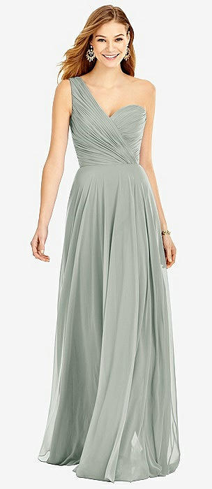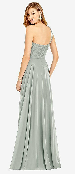 Shirred One-Shoulder Satin Trumpet Dress - Maddie in willow green