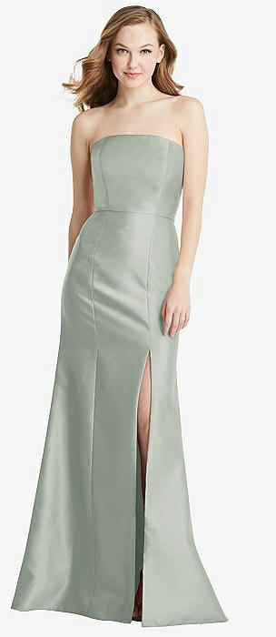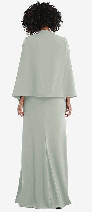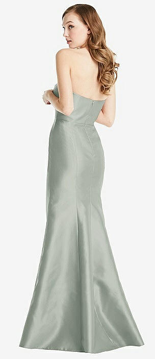 Off-the-Shoulder Bow-Back Satin Trumpet Gown in willow green