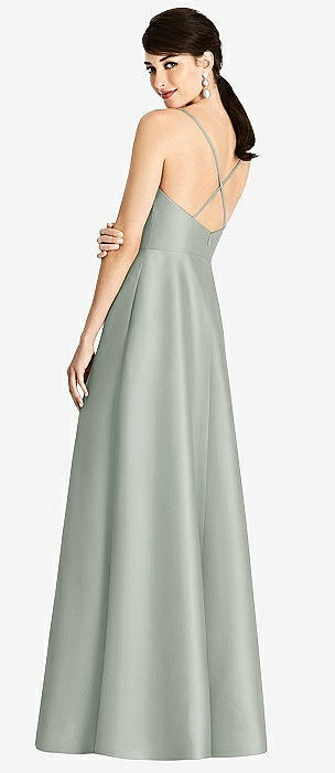 Sleeveless A-Line Satin Dress with Pockets in willow green